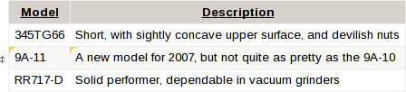 format - The format of the cells in a row of the table. The format is defined like a table row, where the cell data specify the type for each cell. For example, format="| text,16 | label |". Cells can be any of the following types: text, <size>, <initial value> Simple text field. Initial value is optional.